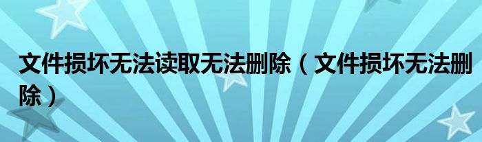 关于文件损坏无法读取无法删除,文件损坏无法删除这个很多人还不知道,今天菲菲来为大家解答以上的问题,现在让我们一起来看看吧!