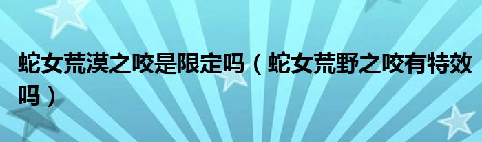 大家好,小晋来为大家解答以下问题,关于蛇女荒漠之咬是限定吗,蛇女荒野之咬有特效吗很多人还不知道,今天让我们一起来看看吧!