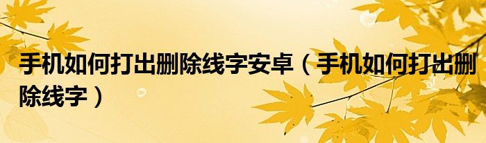 大家好,小晋来为大家解答以下问题,关于手机如何打出删除线字安卓,手机如何打出删除线字很多人还不知道,今天让我们一起来看看吧!