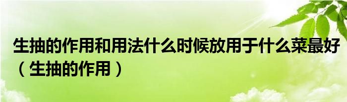 大家好,小晋来为大家解答以下问题,关于生抽的作用和用法什么时候放用于什么菜最好,生抽的作用很多人还不知道,今天让我们一起来看看吧!