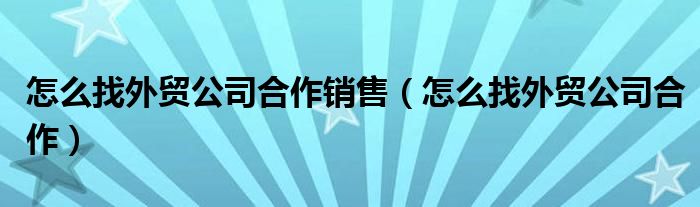 关于怎么找外贸公司合作销售,怎么找外贸公司合作这个很多人还不知道,今天菲菲来为大家解答以上的问题,现在让我们一起来看看吧!