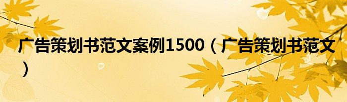 关于广告策划书范文案例1500,广告策划书范文这个很多人还不知道,今天菲菲来为大家解答以上的问题,现在让我们一起来看看吧!