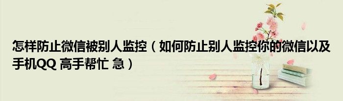 怎样防止微信被别人监控(如何防止别人监控你的微信以及手机QQ高手帮忙急)