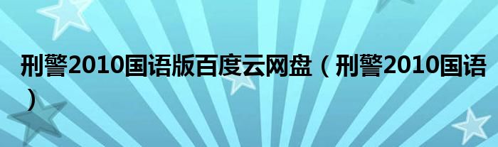 刑警2010国语版百度云网盘(刑警2010国语)