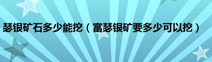 瑟银矿石多少能挖(富瑟银矿要多少可以挖)