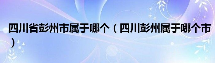 关于四川省彭州市属于哪个,四川彭州属于哪个市这个很多人还不知道,今天菲菲来为大家解答以上的问题,现在让我们一起来看看吧!
