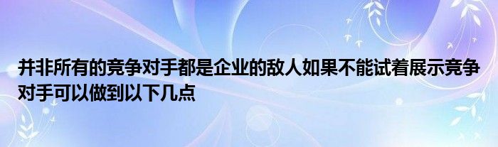 关于并非所有的竞争对手都是企业的敌人如果不能试着展示竞争对手可以做到以下几点这个很多人还不知道,今天菲菲来为大家解答以上的问题,现在让我们一起来看看吧!