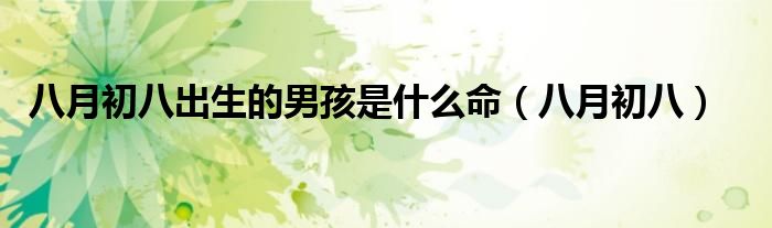 关于八月初八出生的男孩是什么命,八月初八这个很多人还不知道,今天菲菲来为大家解答以上的问题,现在让我们一起来看看吧!