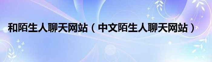 关于和陌生人聊天网站,中文陌生人聊天网站这个很多人还不知道,今天菲菲来为大家解答以上的问题,现在让我们一起来看看吧!