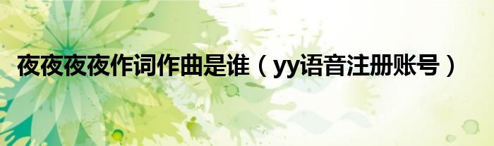 大家好,小飞来为大家解答以上问题,夜夜夜夜作词作曲是谁,yy语音注册账号很多人还不知道,现在让我们一起来看看吧!