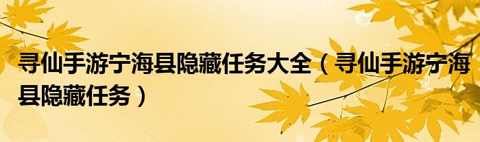 大家好,雨雨来为大家解答以上问题,寻仙手游宁海县隐藏任务大全,寻仙手游宁海县隐藏任务很多人还不知道,现在让我们一起来看看吧!
