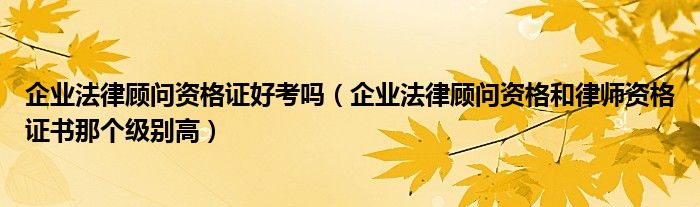 关于企业法律顾问资格证好考吗,企业法律顾问资格和律师资格证书那个级别高这个很多人还不知道,今天菲菲来为大家解答以上的问题,现在让我们一起来看看吧!
