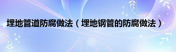 埋地管道防腐做法(埋地钢管的防腐做法)