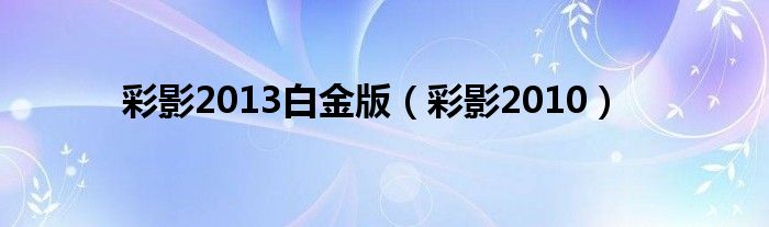 彩影2013白金版(彩影2010)