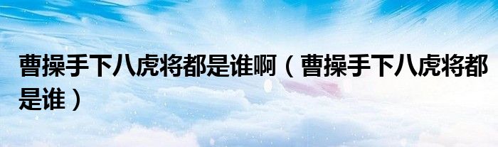 大家好,小晋来为大家解答以下问题,关于曹操手下八虎将都是谁啊,曹操手下八虎将都是谁很多人还不知道,今天让我们一起来看看吧!