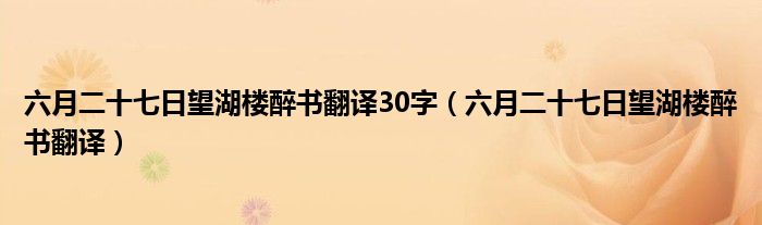关于六月二十七日望湖楼醉书翻译30字,六月二十七日望湖楼醉书翻译这个很多人还不知道,今天菲菲来为大家解答以上的问题,现在让我们一起来看看吧!
