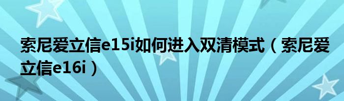 索尼爱立信e15i如何进入双清模式,索尼爱立信e16i很多人还不知道,乐乐来为大家解答以上问题,现在让我们一起来看看吧!
