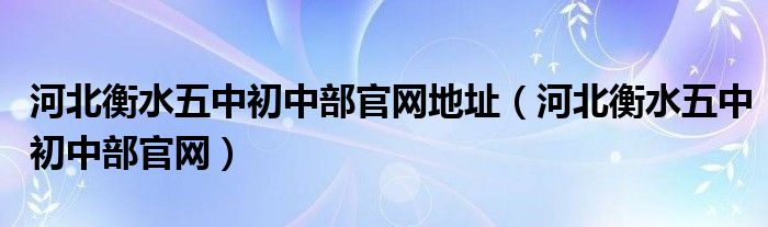 关于河北衡水五中初中部官网地址,河北衡水五中初中部官网这个很多人还不知道,今天菲菲来为大家解答以上的问题,现在让我们一起来看看吧!