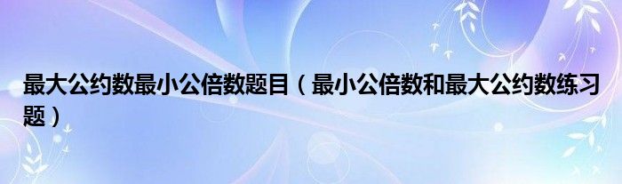 关于最大公约数最小公倍数题目,最小公倍数和最大公约数练习题这个很多人还不知道,今天菲菲来为大家解答以上的问题,现在让我们一起来看看吧!