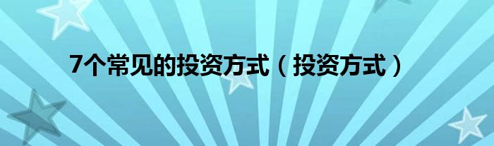 关于7个常见的投资方式,投资方式这个很多人还不知道,今天菲菲来为大家解答以上的问题,现在让我们一起来看看吧!