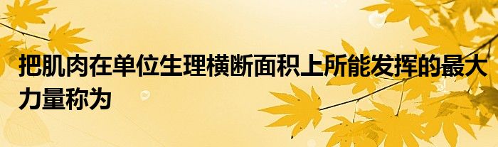 关于把肌肉在单位生理横断面积上所能发挥的最大力量称为这个很多人还不知道,今天菲菲来为大家解答以上的问题,现在让我们一起来看看吧!