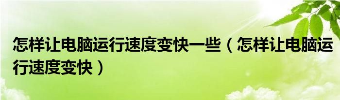 关于怎样让电脑运行速度变快一些,怎样让电脑运行速度变快这个很多人还不知道,今天菲菲来为大家解答以上的问题,现在让我们一起来看看吧!