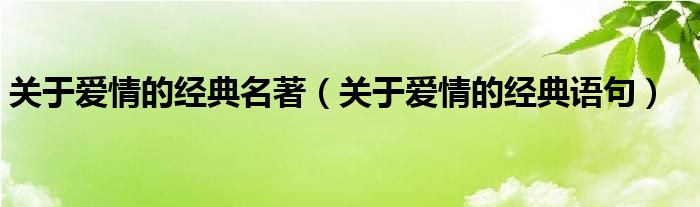 大家好,小飞来为大家解答以上问题,关于爱情的经典名著,关于爱情的经典语句很多人还不知道,现在让我们一起来看看吧!