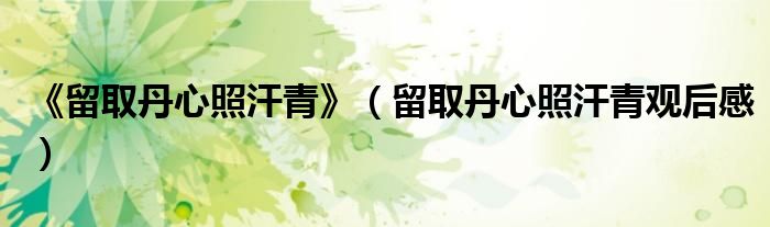 《留取丹心照汗青》(留取丹心照汗青观后感)