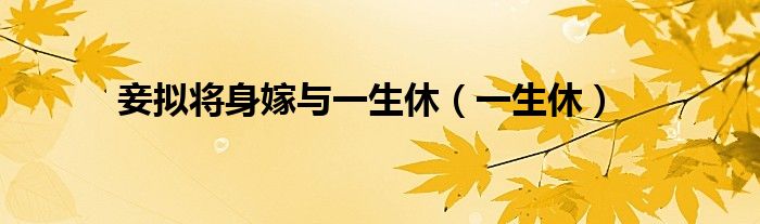 关于妾拟将身嫁与一生休,一生休这个很多人还不知道,今天菲菲来为大家解答以上的问题,现在让我们一起来看看吧!