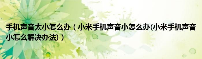 手机声音太小怎么办(小米手机声音小怎么办(小米手机声音小怎么解决办法))