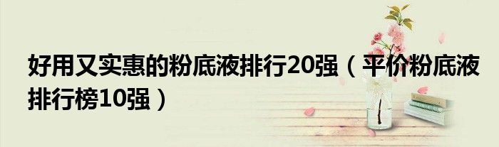 大家好,小晋来为大家解答以下问题,关于好用又实惠的粉底液排行20强,平价粉底液排行榜10强很多人还不知道,今天让我们一起来看看吧!
