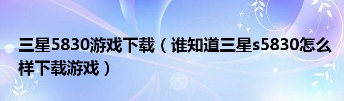 三星5830游戏下载(谁知道三星s5830怎么样下载游戏)