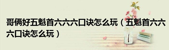 大家好,小晋来为大家解答以下问题,关于哥俩好五魁首六六六口诀怎么玩,五魁首六六六口诀怎么玩很多人还不知道,今天让我们一起来看看吧!