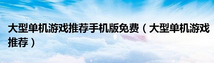 大家好,雨雨来为大家解答以上问题,大型单机游戏推荐手机版免费,大型单机游戏推荐很多人还不知道,现在让我们一起来看看吧!