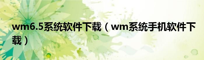 大家好,雨雨来为大家解答以上问题,wm6.5系统软件下载,wm系统手机软件下载很多人还不知道,现在让我们一起来看看吧!