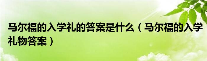大家好,雨雨来为大家解答以上问题,马尔福的入学礼的答案是什么,马尔福的入学礼物答案很多人还不知道,现在让我们一起来看看吧!