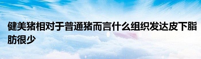 关于健美猪相对于普通猪而言什么组织发达皮下脂肪很少这个很多人还不知道,今天菲菲来为大家解答以上的问题,现在让我们一起来看看吧!