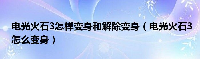 电光火石3怎样变身和解除变身(电光火石3怎么变身)