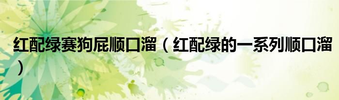 关于红配绿赛狗屁顺口溜,红配绿的一系列顺口溜这个很多人还不知道,今天菲菲来为大家解答以上的问题,现在让我们一起来看看吧!