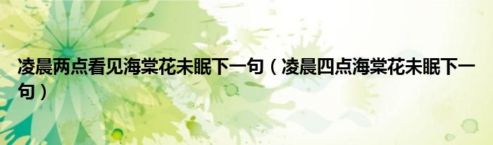大家好,雨雨来为大家解答以上问题,凌晨两点看见海棠花未眠下一句,凌晨四点海棠花未眠下一句很多人还不知道,现在让我们一起来看看吧!