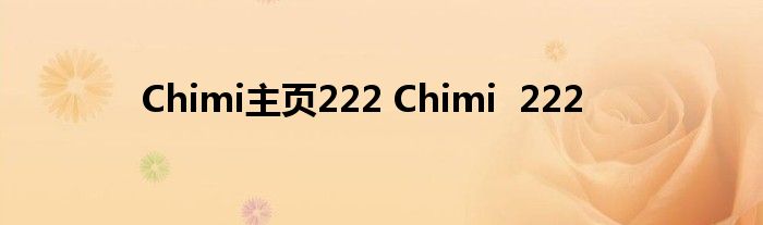 关于Chimi主页222 Chimi 222这个很多人还不知道,今天菲菲来为大家解答以上的问题,现在让我们一起来看看吧!