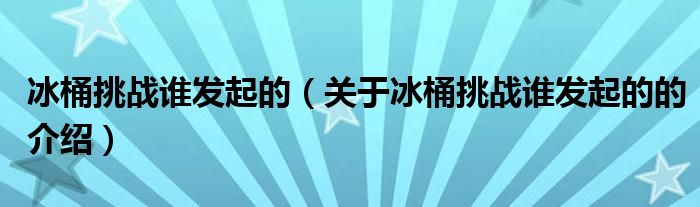 大家好,今天小乐来为大家解答以上的问题。冰桶挑战谁发起的,关于冰桶挑战谁发起的的介绍很多人还不知道,现在让我们一起来看看吧!