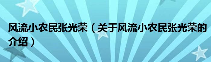 大家好,今天小乐来为大家解答以上的问题。风流小农民张光荣,关于风流小农民张光荣的介绍很多人还不知道,现在让我们一起来看看吧!