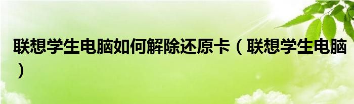大家好,雨雨来为大家解答以上问题,联想学生电脑如何解除还原卡,联想学生电脑很多人还不知道,现在让我们一起来看看吧!