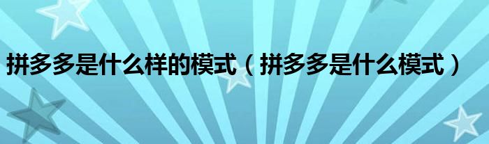 大家好,跳跳为你解答以上问题。拼多多是什么样的模式,拼多多是什么模式这个问题很多人还不知道,现在让我们一起来看看吧!