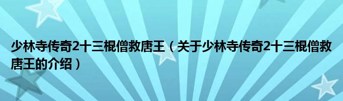 大家好,今天小乐来为大家解答以上的问题。少林寺传奇2十三棍僧救唐王,关于少林寺传奇2十三棍僧救唐王的介绍很多人还不知道,现在让我们一起来看看吧!