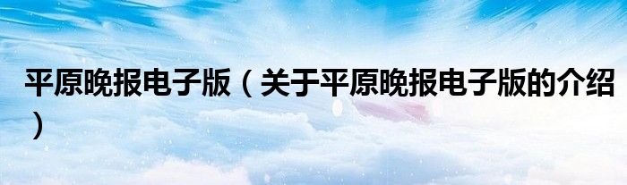 大家好,今天小乐来为大家解答以上的问题。平原晚报电子版,关于平原晚报电子版的介绍很多人还不知道,现在让我们一起来看看吧!