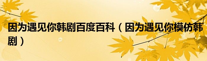 大家好,小晋来为大家解答以下问题,关于因为遇见你韩剧百度百科,因为遇见你模仿韩剧很多人还不知道,今天让我们一起来看看吧!
