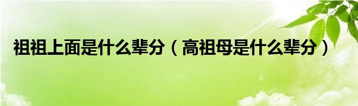 祖祖上面是什么辈分(高祖母是什么辈分)