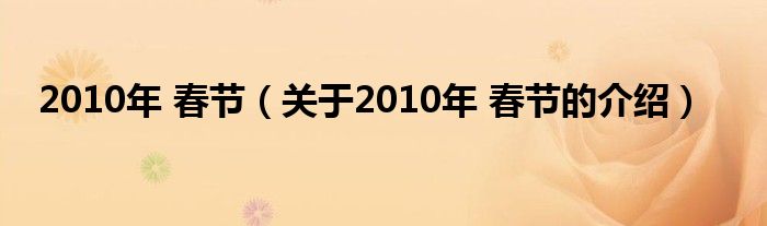 大家好,今天小乐来为大家解答以上的问题。2010年 春节,关于2010年 春节的介绍很多人还不知道,现在让我们一起来看看吧!